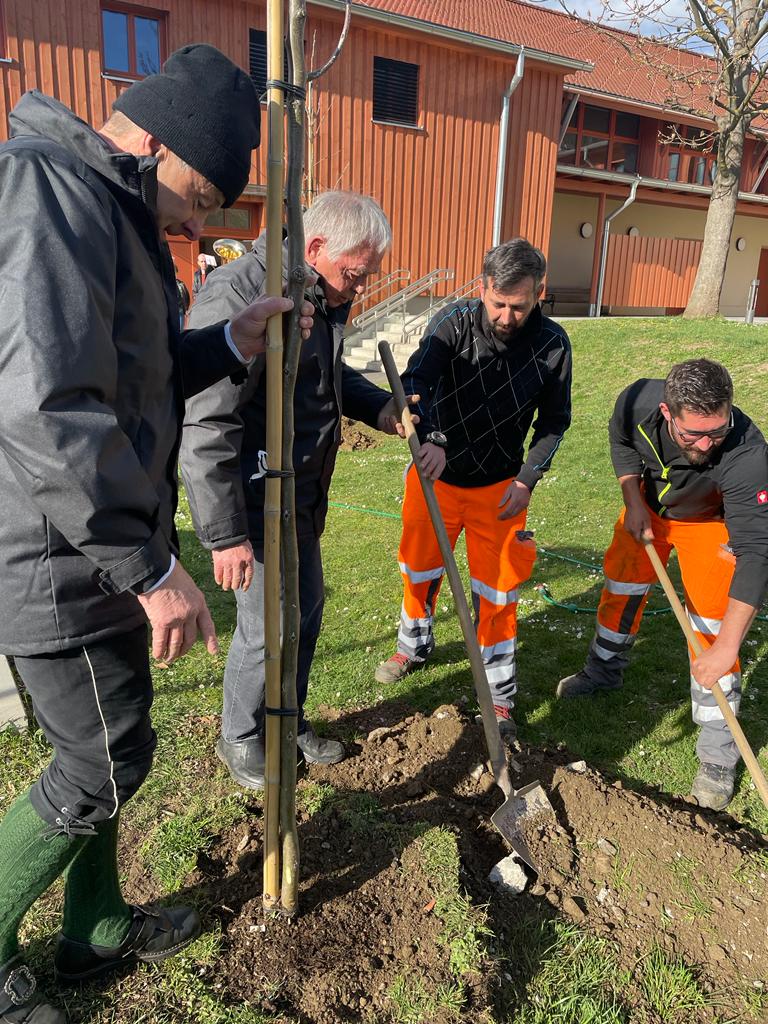 Im März hatten wir zwei kleinere Ausrückungen: Eine kleine Gruppe spielte bei einer Bildstockwanderung und wir setzten zwei Bäume vor unserem Musikheim.